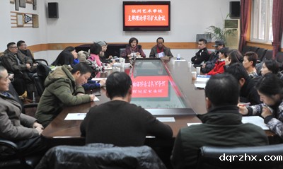 2014-12-29 为认真学习和深入贯彻落实十八届三中全会、四中全会及习近平总书记在文艺座谈会上的讲话精神,扎实推进“三转一争”活动的组织开展,认真谋划2015年各项工作,12月26日中午,我校支部组织全体中层干部、党员、入党积极分子和教研组长在会议室召开理论学习(扩大)会议。