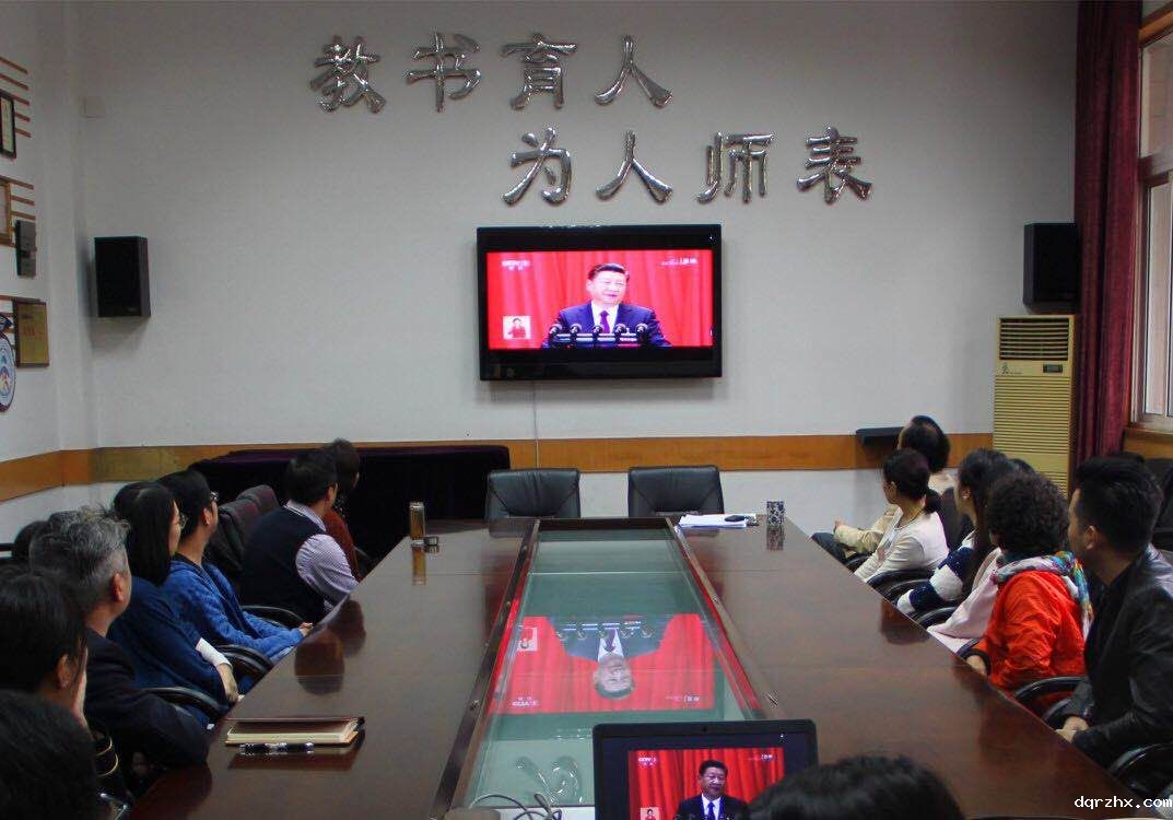 10月18日上午betway在线官方网址党员、干部和上午无课的老师早早的守候在校会议室电视屏幕前,观看十九大开幕盛况。开幕式过后,习近平总书记代表第十八届中央委员会向党的十九大作《决胜全面建成小康社会 夺取新时代中国特色社会主义伟大胜利》报告。大家聚精会神,仔细聆听报告内容,每个在座的老师被报告中一个个新名词、新观念、新政策深深的吸引。报告中提到的,要优先发展教育事业,要繁荣和发展社会主义文艺事业,都引起了我们强烈共鸣。大家为习近平同志的报告所打动,所鼓舞,不时爆发出阵阵掌声,也更加坚定了跟党走的信心。